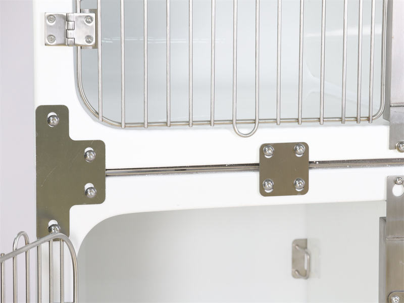 Avtagbar ytterdörr fäst med starka gångjärn kan ersättas av en transparent akryldörr och förvandla buren till en syrgasbehandlingsstation.